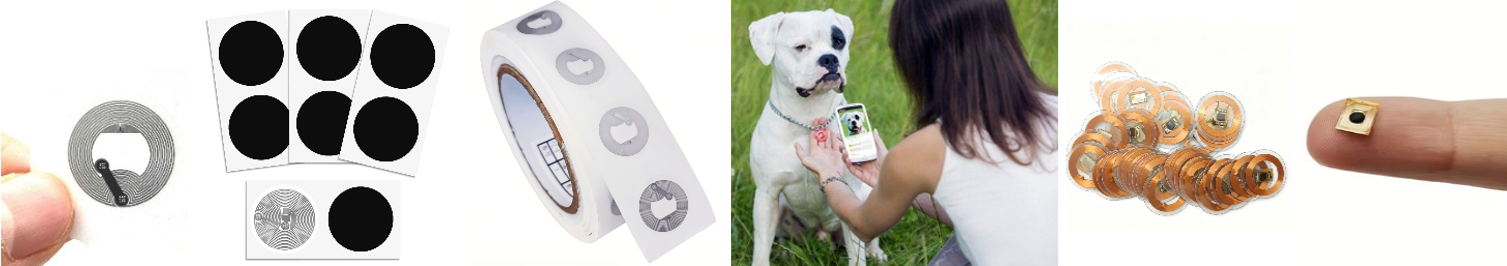 Бесконтактне налепнице и тагови за уградњу, истих карактеристика, представљају најсвестраније решење јер се могу залепити или уградити готово свуда – на производе, амбалажу, излоге, столове, плакате, машине, намештај или рекламне материјале. Најпопуларнији производ са уграђеним тагом је огрлица за псе која приказује онлајн профил пса и контакт информације власника
